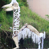 A ideia é reaproveitar objetos e todo tipo de material que já teve utilidade e foi descartado pelo homem para conceber esculturas nas mais variadas formas e dimensões.